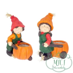 „Kerámia” baba; fiú/lány; szőrör jellegű ruhában; lógólábú; macis pulcsi; 7*12cm+lábak