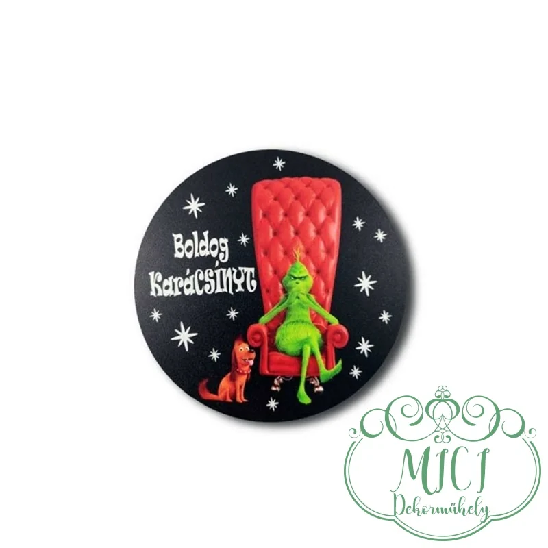 Egyedi karácsonyi GRINCS-es fa tábla; kiegészítője lehet karácsonyi/ünnepi asztaldísznek; koszorúnak; ajtó kopogtatónak; egyéb dekorációs termékeknek. Felhasználhatod akár hűtőmágnes készítéséhez is.