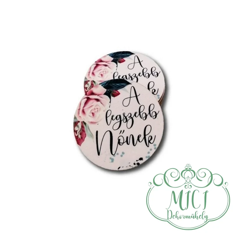 A legszebb nőnek-rózsaszín, virágos kör 5x5cm