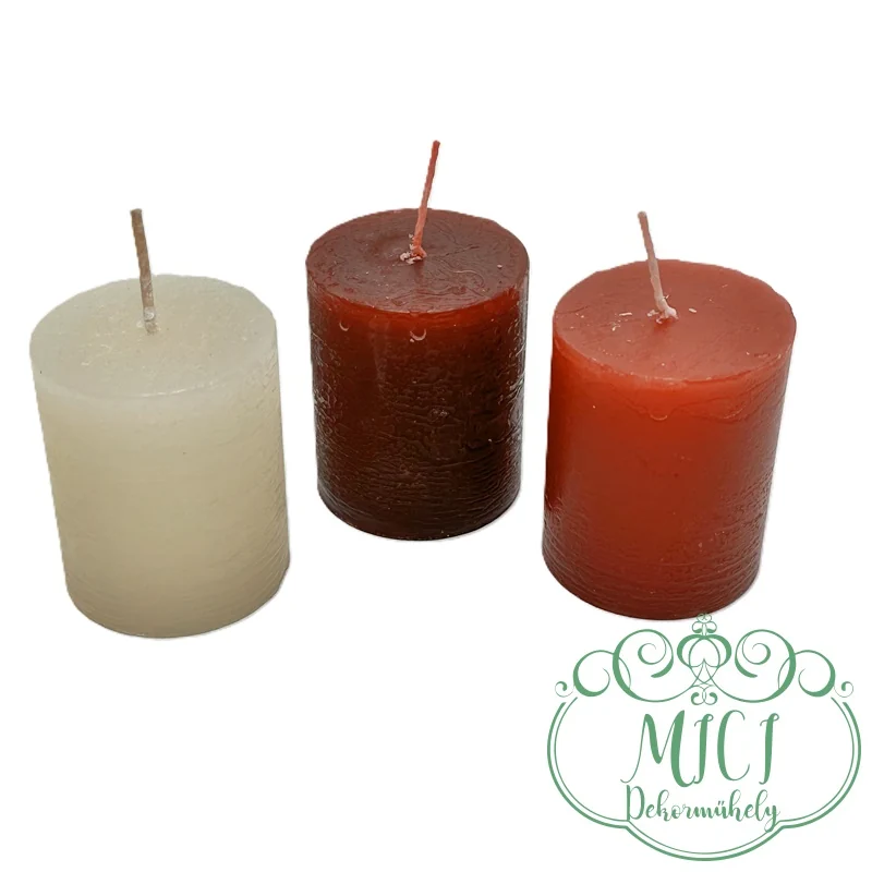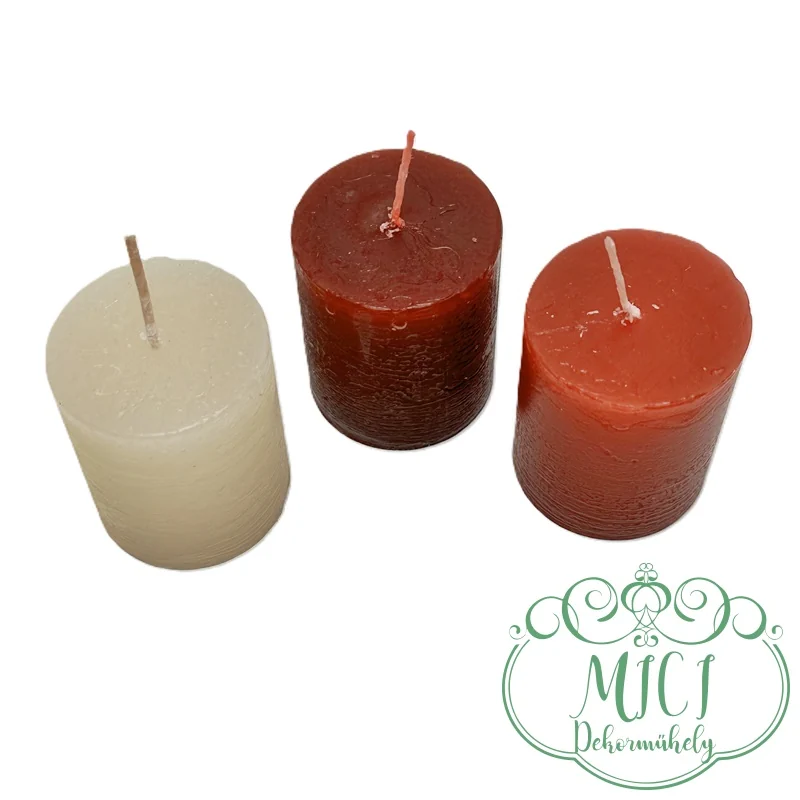 A gyertyák a karácsonyi készülődés elengedhetetlen kellékei. Karácsonyi, adventi,kegyeleti termékek, ünnepi asztaldíszek, koszorúk, kopogtatók díszítéséhez használható. Termésekkel, selyem- és polifoam virágokkal kombinálható.