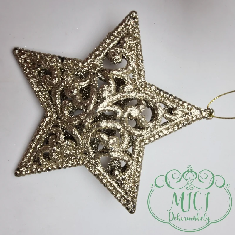 Akasztós karácsonyfa dísz; csillag; 3D; pezsgő glitteres; műanyag; 11*11cm