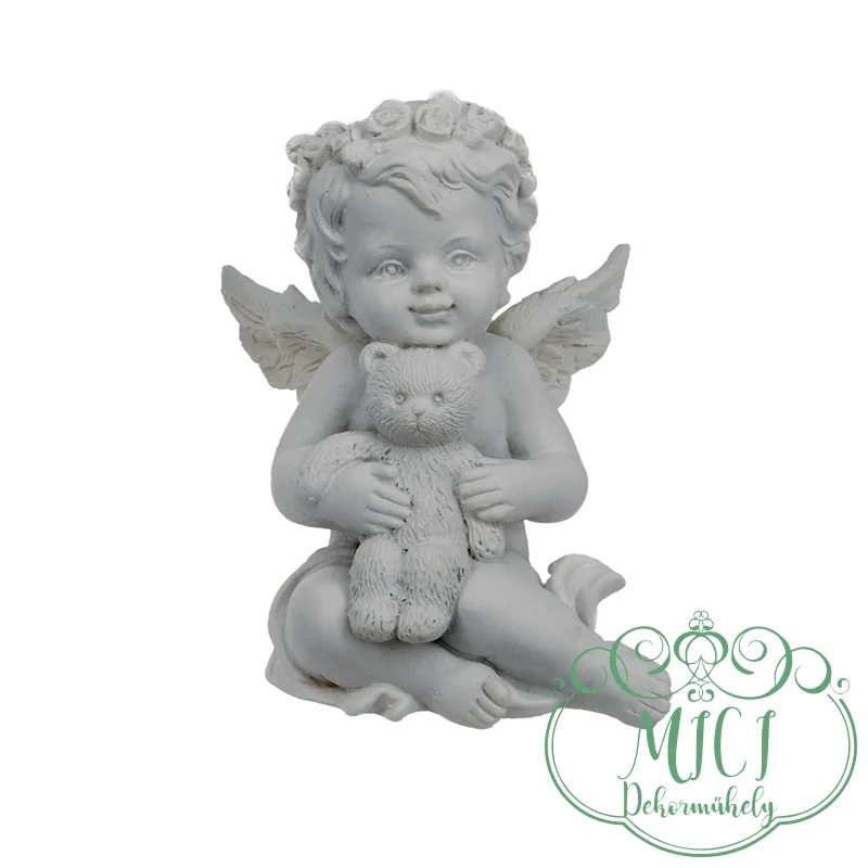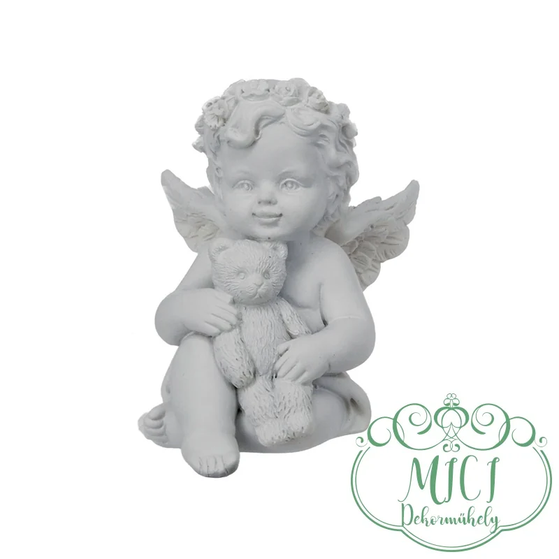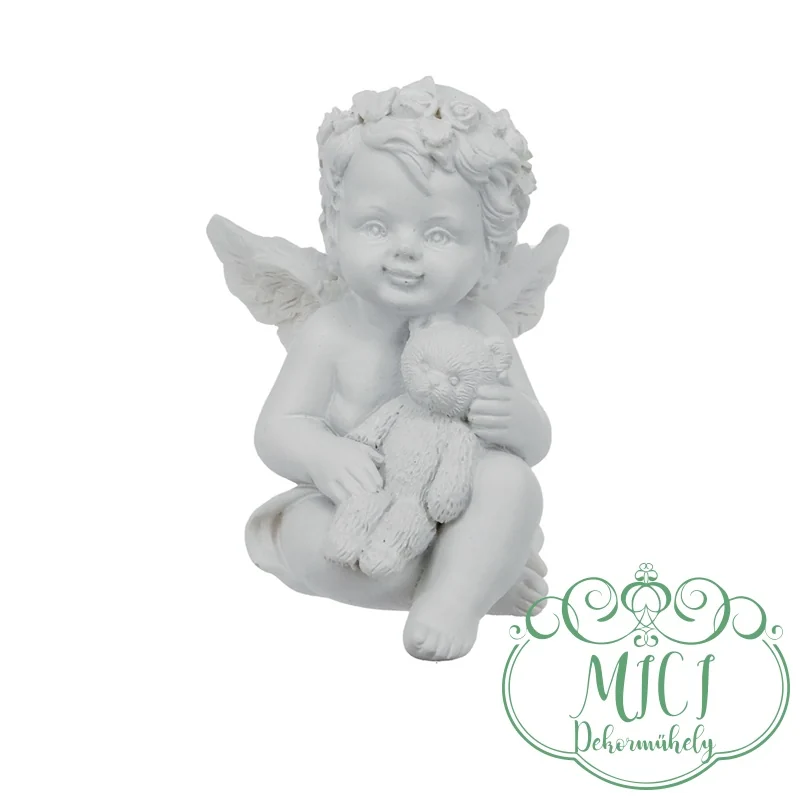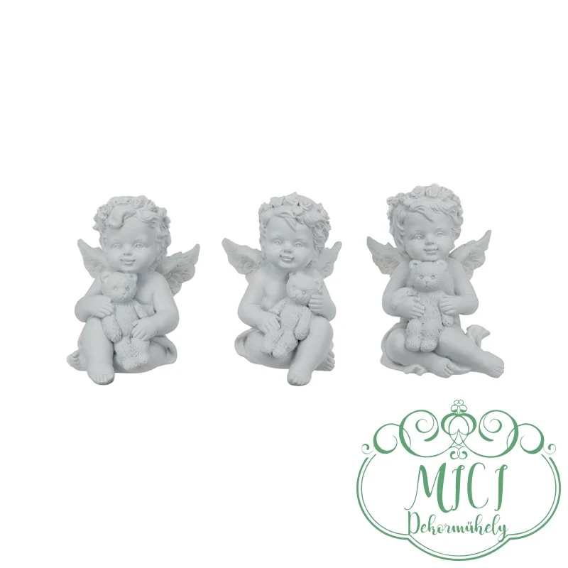 Angyal; Angyalka kezében maci; fehér; ülő; 3féle; polyresin; 4,5×4,7×6,1cm