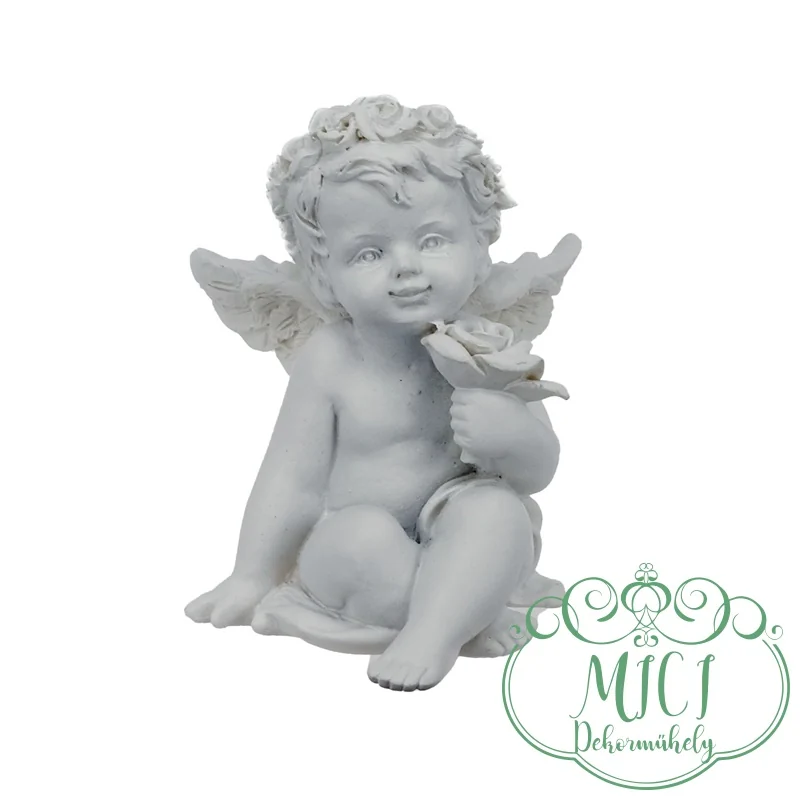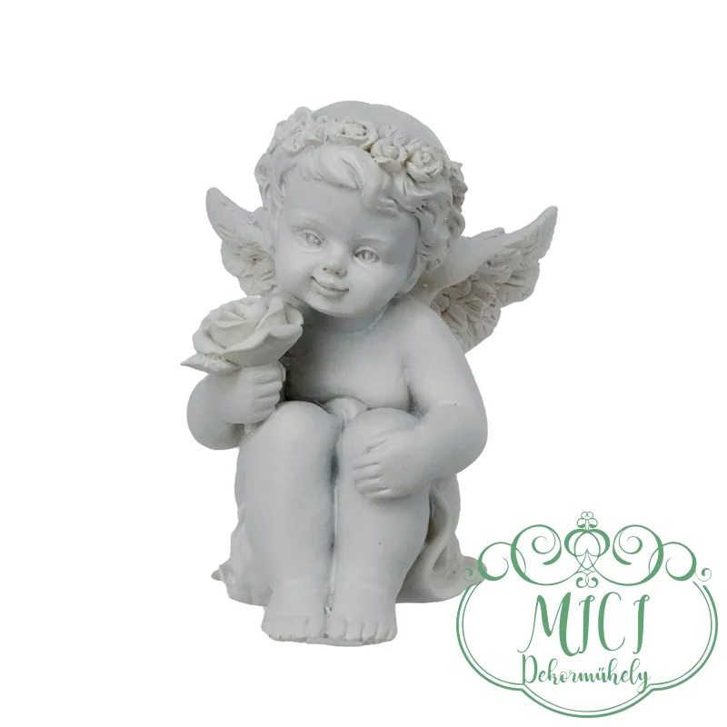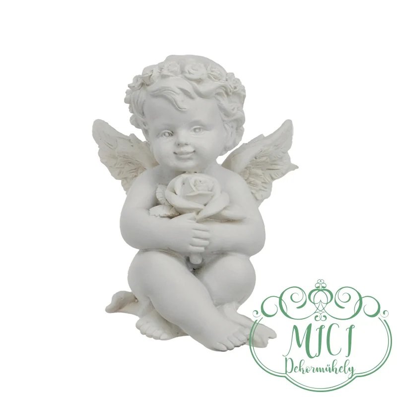 Angyal; Angyalka kezében rózsa; fehér; ülő; 3féle; polyresin; 4,7x5x6,4cm