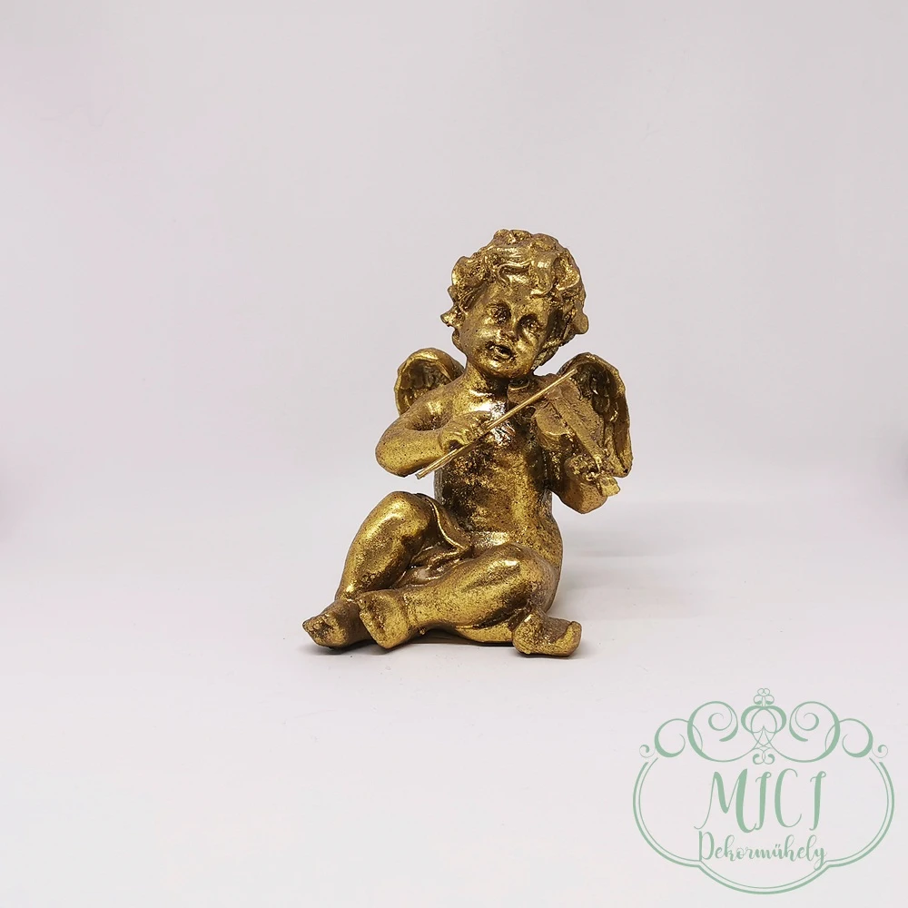 Angyal; hegedűvel; arany; ülő