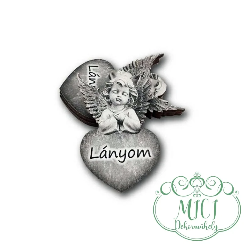 Angyal szívecskén kőhatás-lányom 5×7,5cm