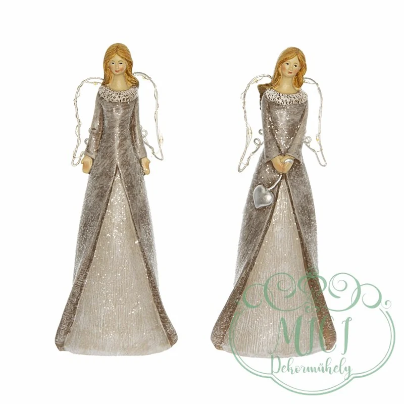 Angyal szívvel; álló; LED-es elemes; szürke; poly 8×4,5x19cm