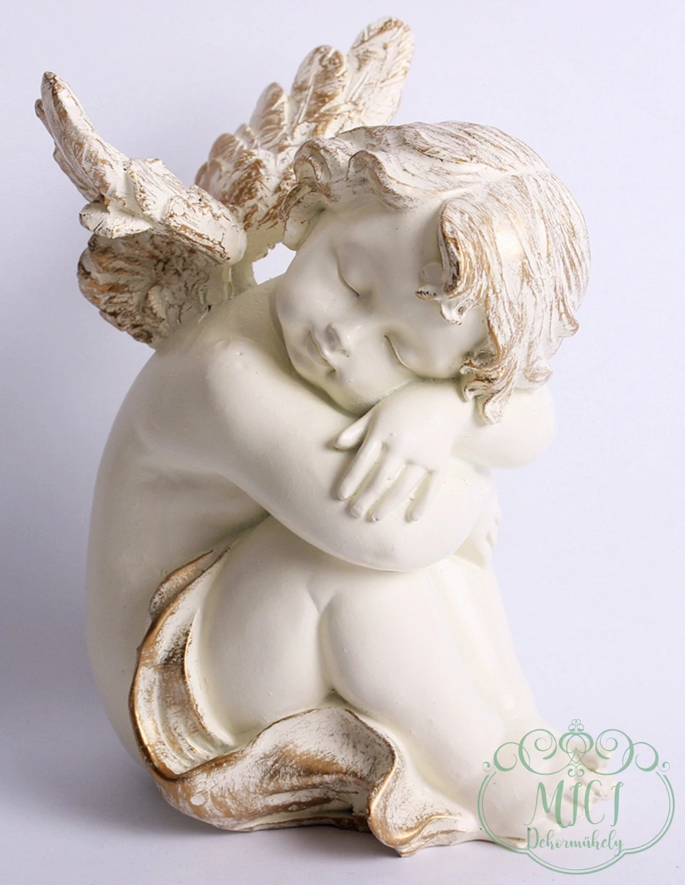 Angyal; ülő-alvó; lepellel; fehér/arany