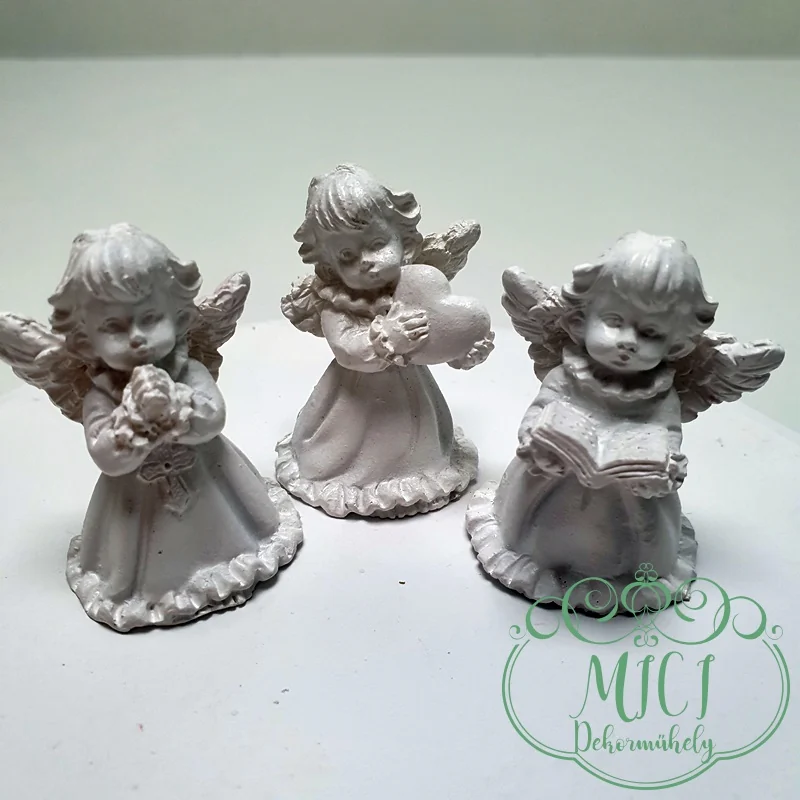 Angyalka; álló; nagy szoknyában; kezében könyv/szív/imádkozó; fehér; polyresin; 3*5cm