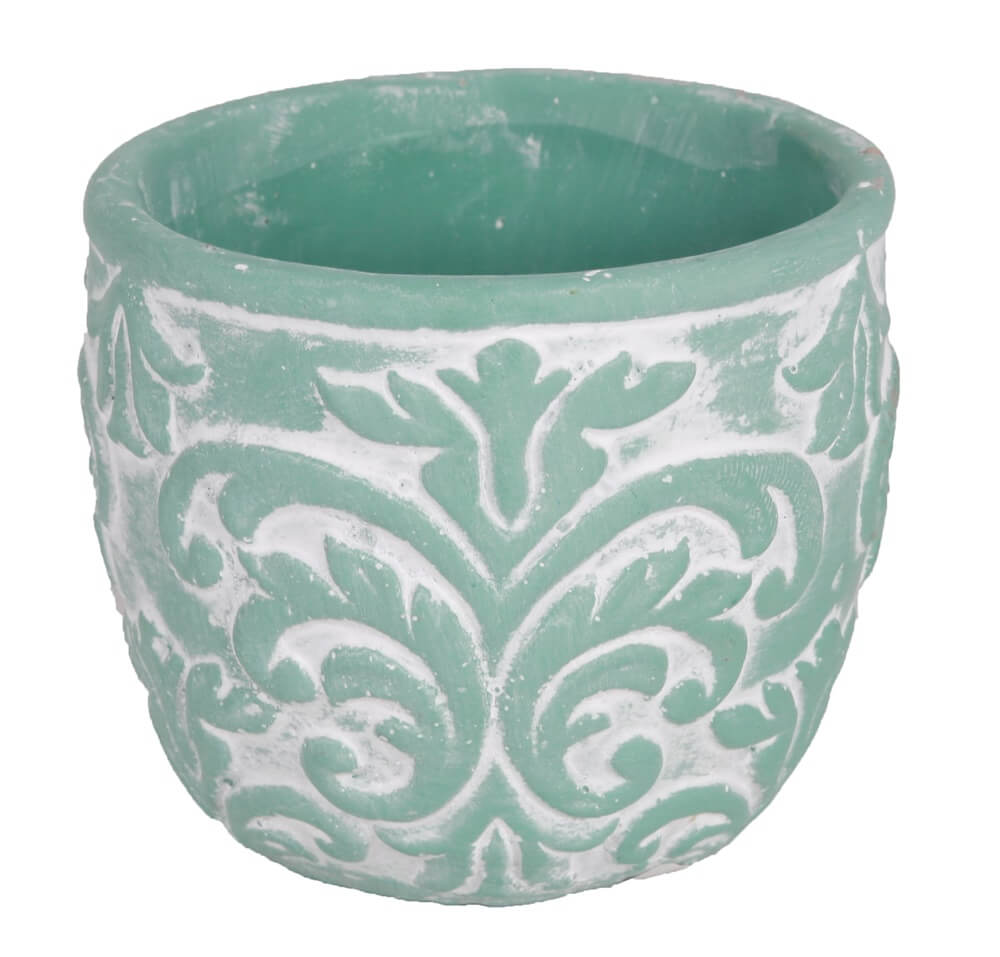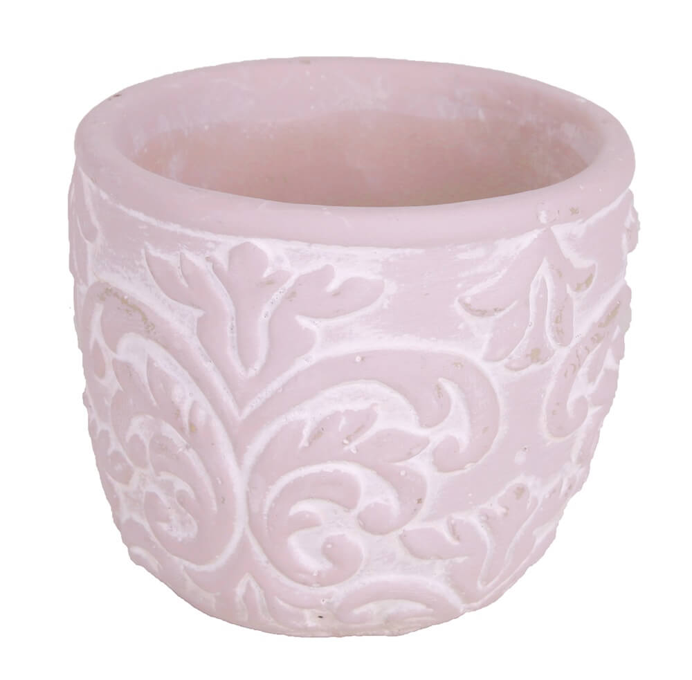 Beton kaspó cirádás mintával, Kerek forma 9cm átmérõjû, 7,5cm magasságú, Többféleképpen használhatod. Kiegészítõje lehet: virágbox, virágkaspó, egyéb home decor. Kül- és beltéri használatra egyaránt alkalmas.