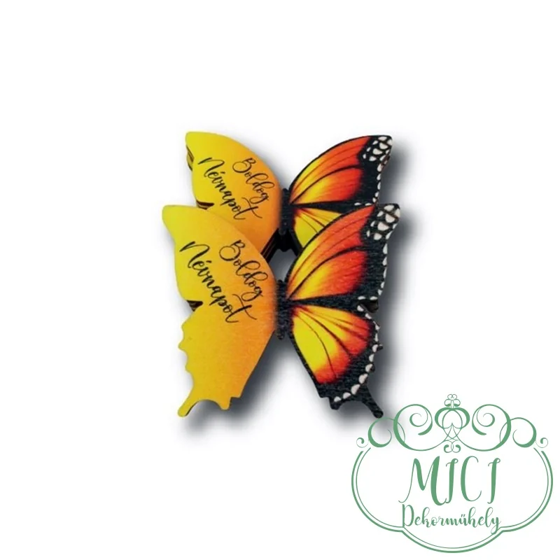 Boldog névnapot sárga pillangó 6,5×7,5cm
