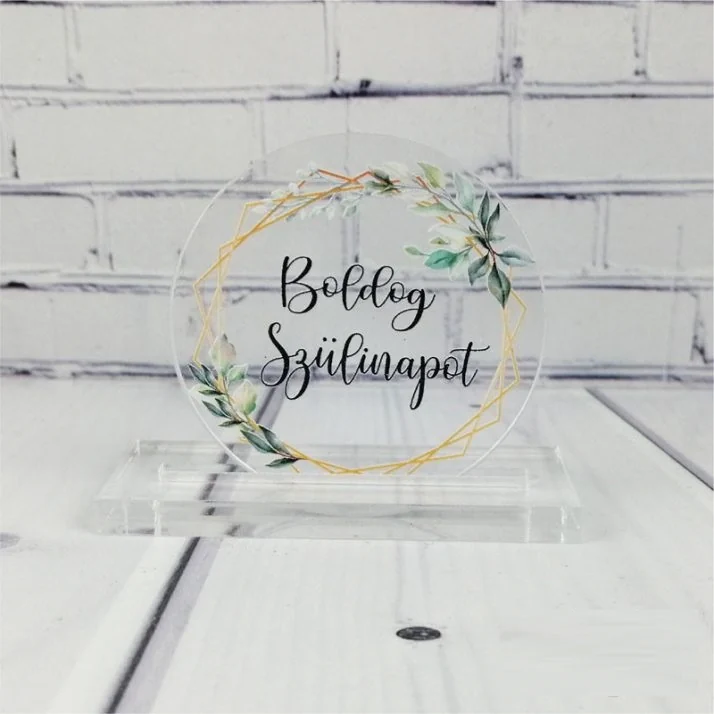 A megadott ár 1db termékre vonatkozik. Szülinapra szóló plexi táblák; amelyek kitűnő dekorációs kellékek; egy új színfoltja dekorációs kellékeinknek. Egyedi plexi tábla; kiegészítője lehet asztaldísznek; virágboxnak; egyéb dekorációs termékeknek. Méretei: magassága:5cm hosszúsága:5cm Szeretsz kreatívkodni? Akkor nálunk jó helyen jársz; nézz körbe dekorációs alapanyagaink között. Széles választékkal alapanyagok; dekorációs kiegészítők; kellékek megtalálhatóak nálunk.