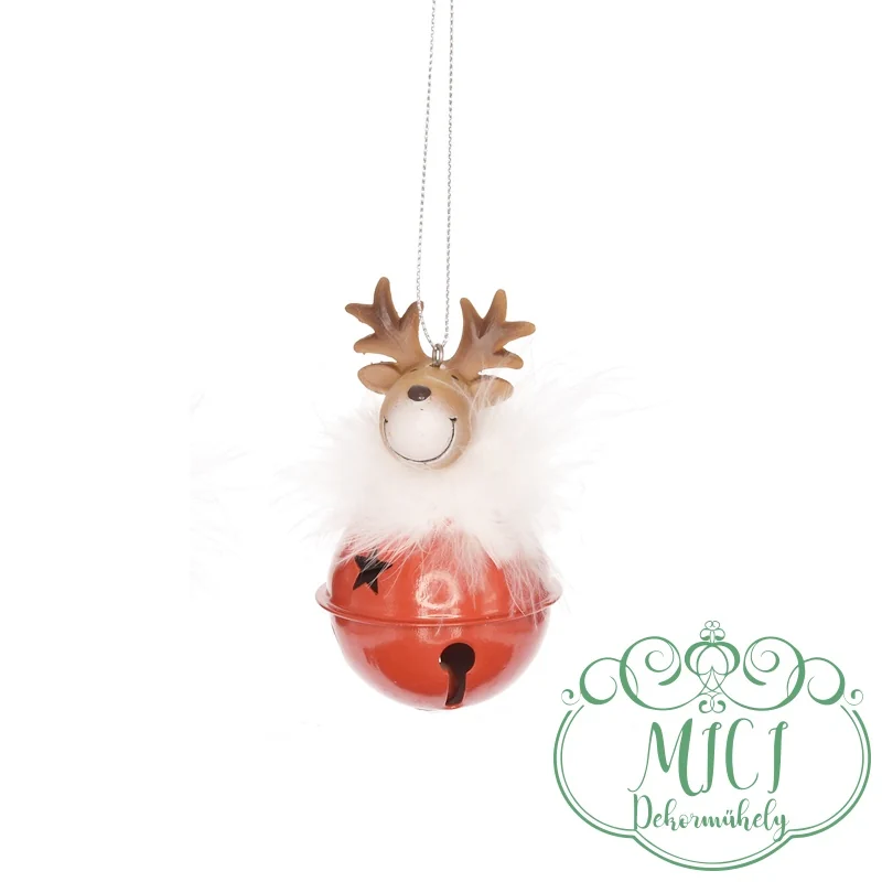 Csengettyű Szarvassal; akasztós; pihe szőrrel; fehér/piros; 6,5×6,5x11cm