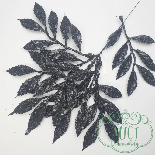 Csillámos dekor; Pick csokor; ágacskák levelekkel; csillámos flitteres; beszúróval együtt 30cm/5ágacska; ágacska hossza 15-17cm; (7db levél/ág)