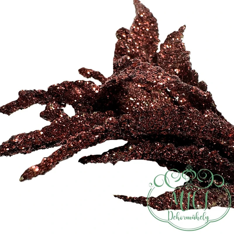 Pick ág; dekorációs ág/ágacska; Csillogó dekorációs alapanyag; Glitteres ágacska; betűzós szárral; virág-leveles csokros jellegű home decor; glitteres/flitteres csillámos ágacskák. Kiegészítője lehet: karácsonyi, adventi asztaldísz; ajtókopogtató; egyéb lakásdekoráció; karácsonyfadísz, csokor. Kreatív ajándék alapanyag, kiegészítője lehet: születésnap, névnap, esküvő, anyák napja, egyéb esemény
