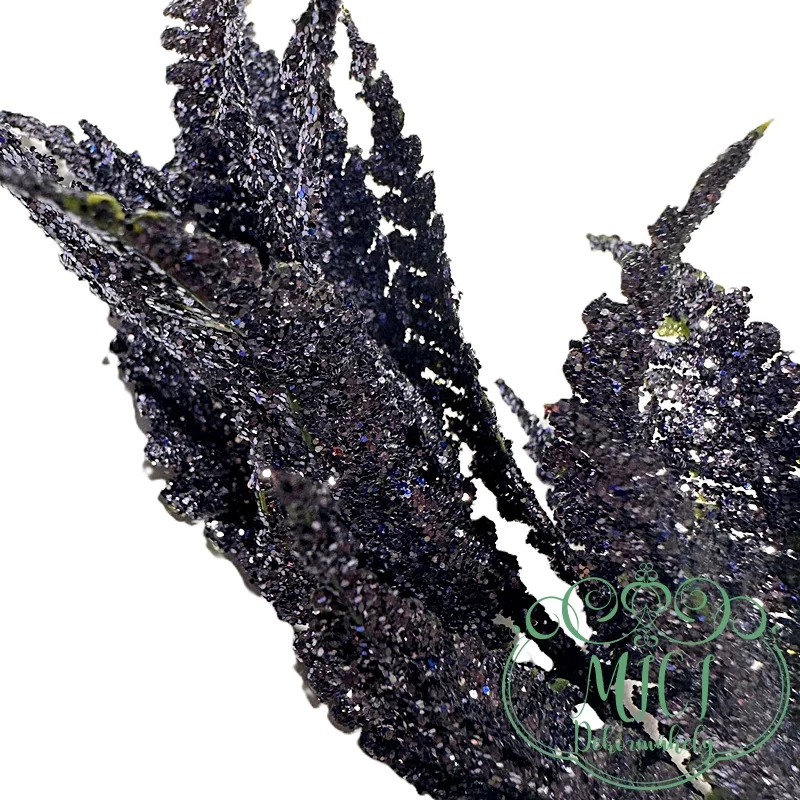 Csillámos dekor; pick ág; csillámos dekor; apró hosszúkás levelű ágacska; rózsaszín/piros/kék; ~12cm; 1ág/csomag