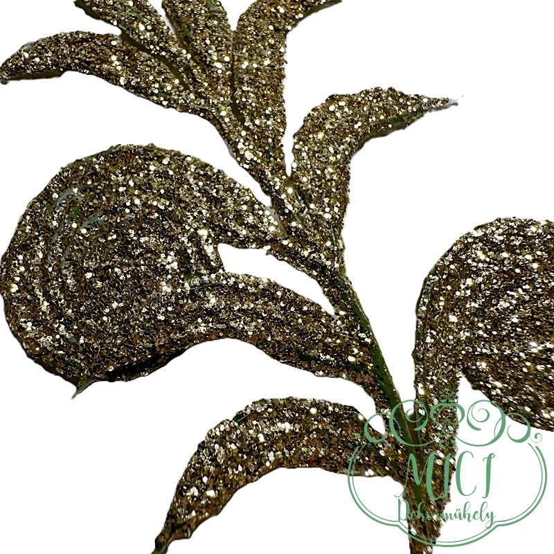 Pick ág; dekorációs ág/ágacska; Csillogó dekorációs alapanyag; Glitteres ágacska; betűzós szárral; virág-leveles csokros jellegű home decor; glitteres/flitteres csillámos ágacskák. Kiegészítője lehet: karácsonyi, adventi asztaldísz; ajtókopogtató; egyéb lakásdekoráció; karácsonyfadísz, csokor. Kreatív ajándék alapanyag, kiegészítője lehet: születésnap, névnap, esküvő, anyák napja, egyéb esemény