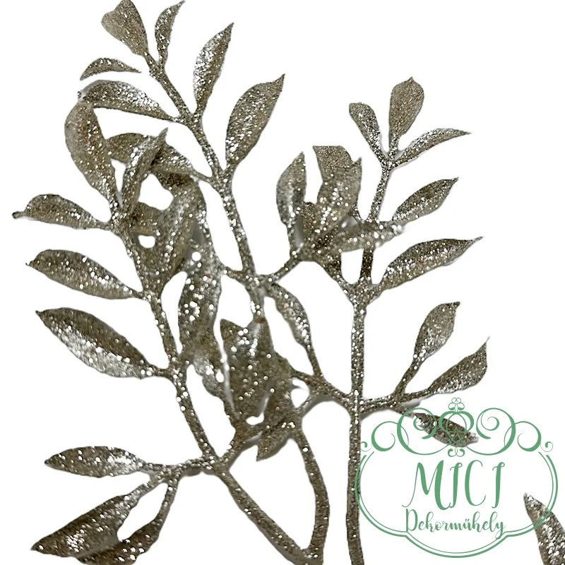 Pick ág; dekorációs ág/ágacska; Csillogó dekorációs alapanyag; Glitteres ágacska; betűzós szárral; virág-leveles csokros jellegű home decor; glitteres/flitteres csillámos ágacskák. Kiegészítője lehet: karácsonyi, adventi asztaldísz; ajtókopogtató; egyéb lakásdekoráció; karácsonyfadísz, csokor. Kreatív ajándék alapanyag, kiegészítője lehet: születésnap, névnap, esküvő, anyák napja, egyéb esemény