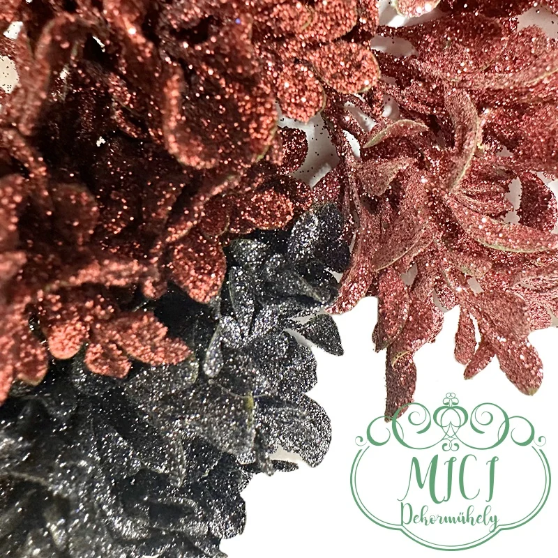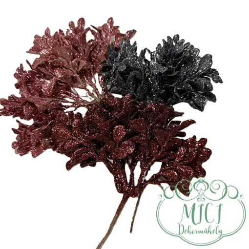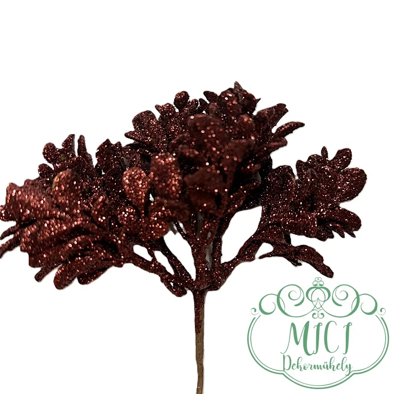 Pick ág; dekorációs ág/ágacska; Csillogó dekorációs alapanyag; Glitteres ágacska; betűzós szárral; virág-leveles csokros jellegű home decor; glitteres/flitteres csillámos ágacskák. Kiegészítője lehet: karácsonyi, adventi asztaldísz; ajtókopogtató; egyéb lakásdekoráció; karácsonyfadísz, csokor. Kreatív ajándék alapanyag, kiegészítője lehet: születésnap, névnap, esküvő, anyák napja, egyéb esemény