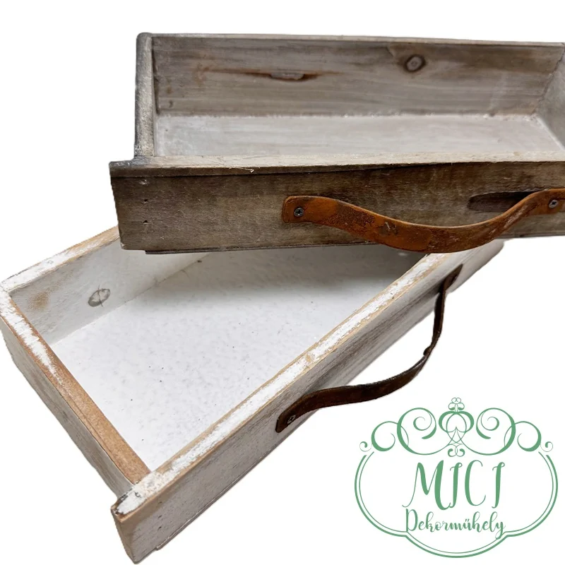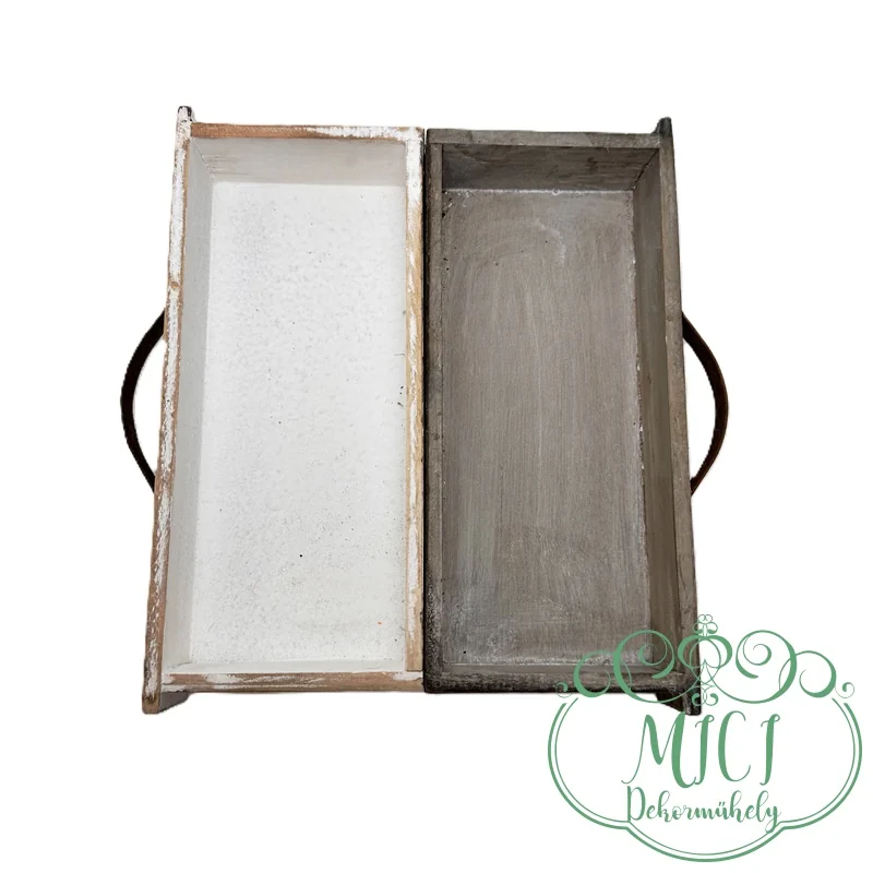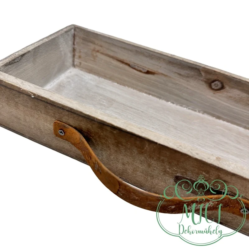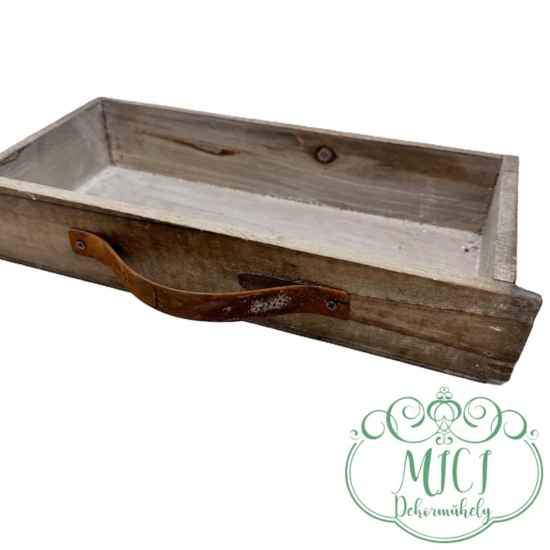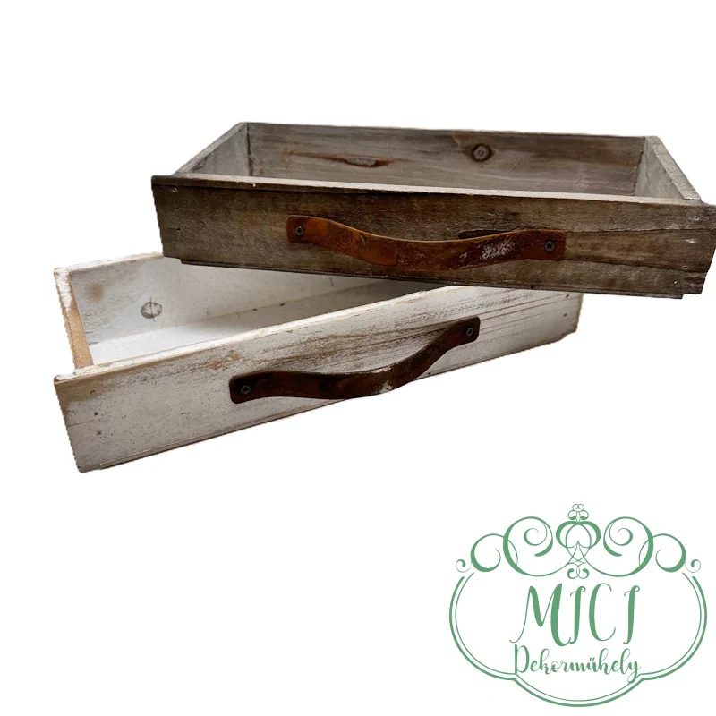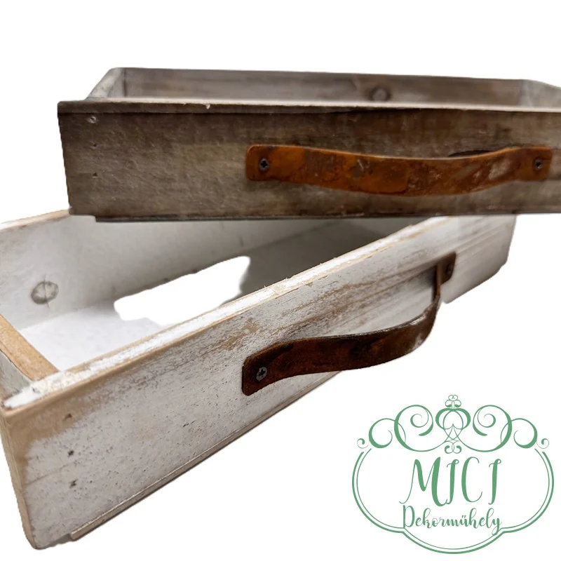 Dekor fa ládika; „kaspó”; fiók-rozsdás fogantyúval; fehér/stürkés; 2méretben