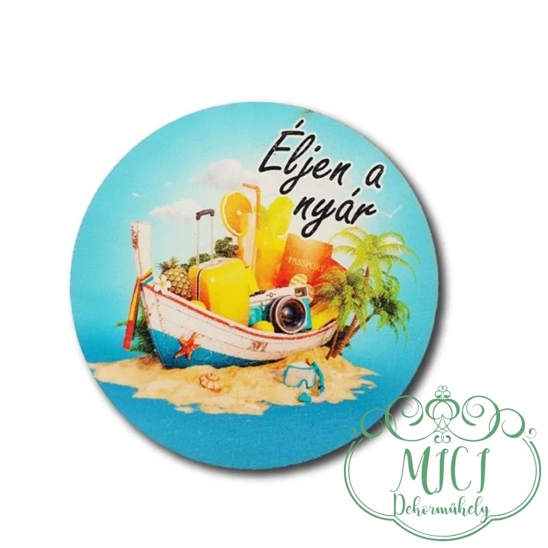 Egyedi fa tábla; kiegészítője lehet otthonod nyári dekorációjának; asztaldísznek; koszorúnak; ajtó kopogtatónak; egyéb dekorációs termékeknek. Felhasználhatod akár hűtőmágnes készítéséhez is.