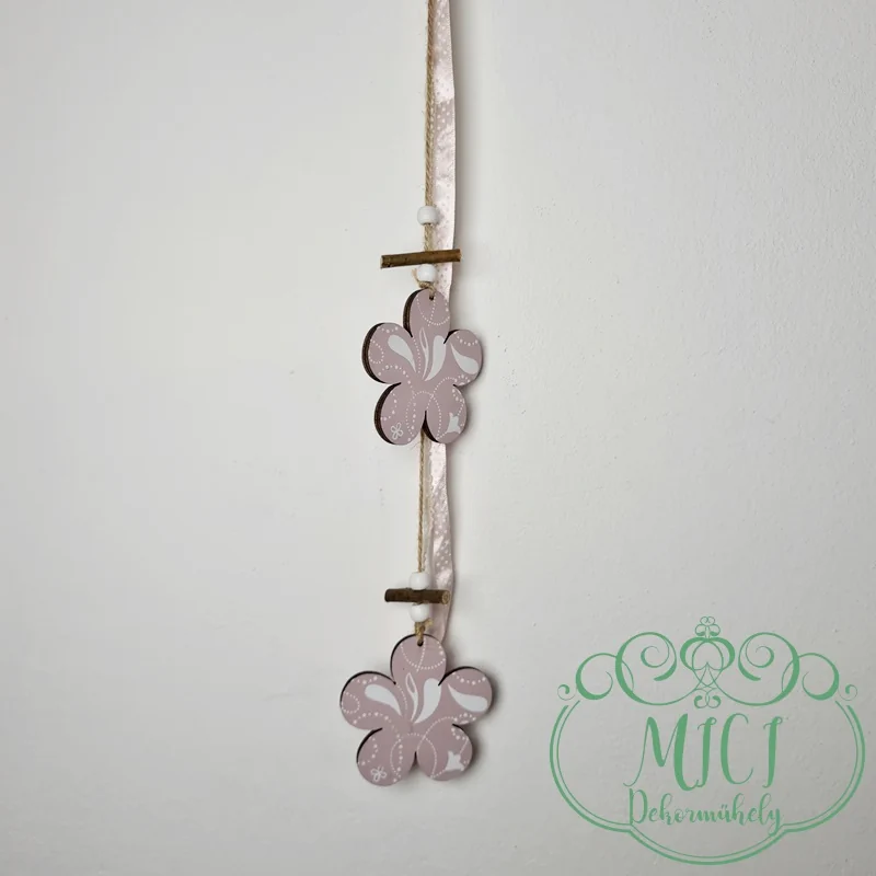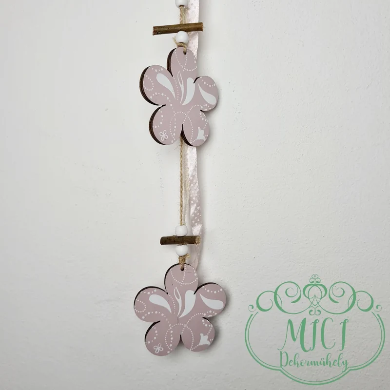 Fa dekoráció; akasztós dísz; virágok; rózsaszín-fehér minta; 53cm