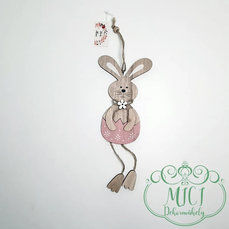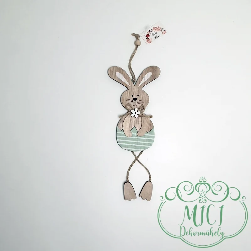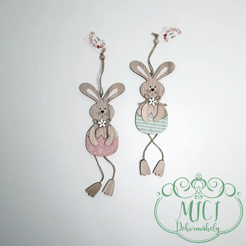 Fa húsvéti dekoráció; fa nyuszi; akasztós; fiú/lány; zöld/rózsaszín; 9*23cm+akasztó