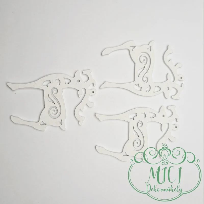 Fa kütyü; Fa szarvas; díszes áttört rénszarvas; csodaszarvas; fehér; 3mm vastag; 9*6cm