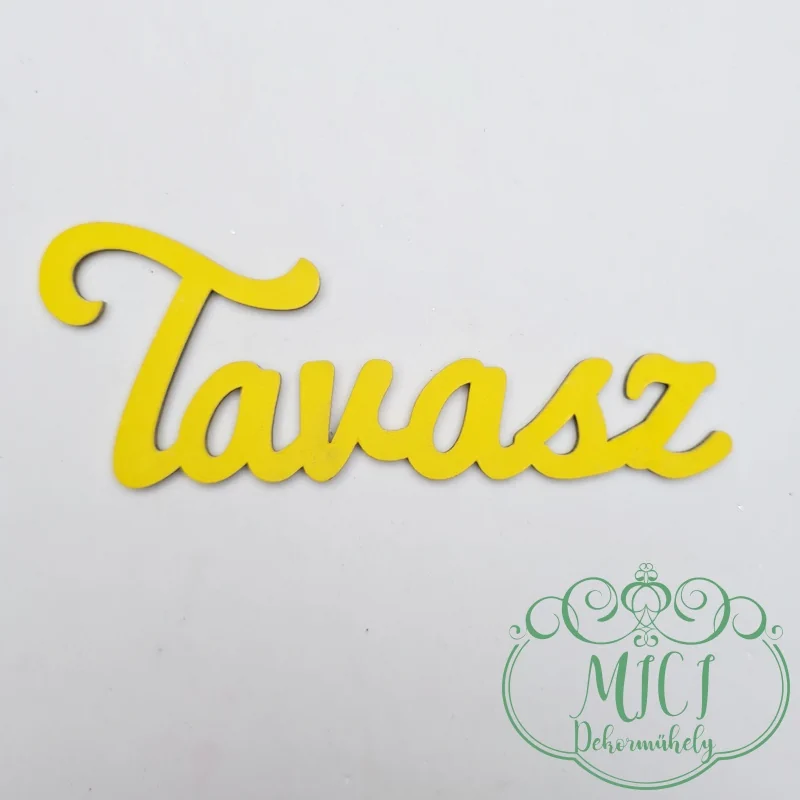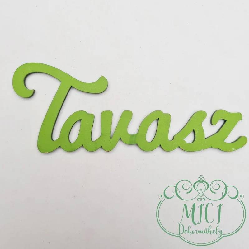 Fa tábla; Tavasz felirat; lézervágott tábla; zöld; 10*3,5cm