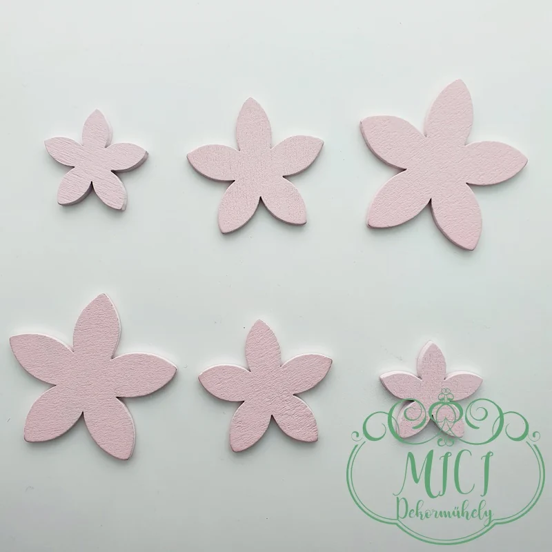 Fa virág; csillag szerű; rózsaszín; több méretben; 3mm vastag