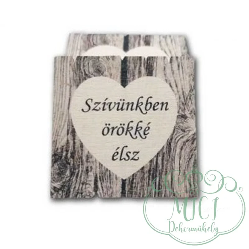 Fadeszkán fehér szív-Szívünkben örökké élsz 5x5cm