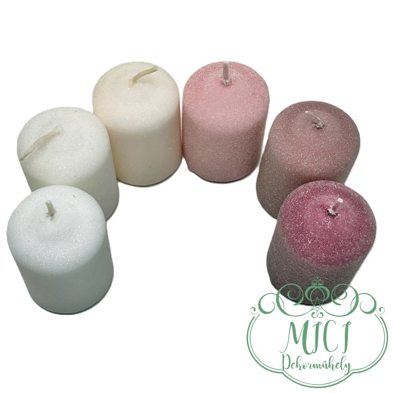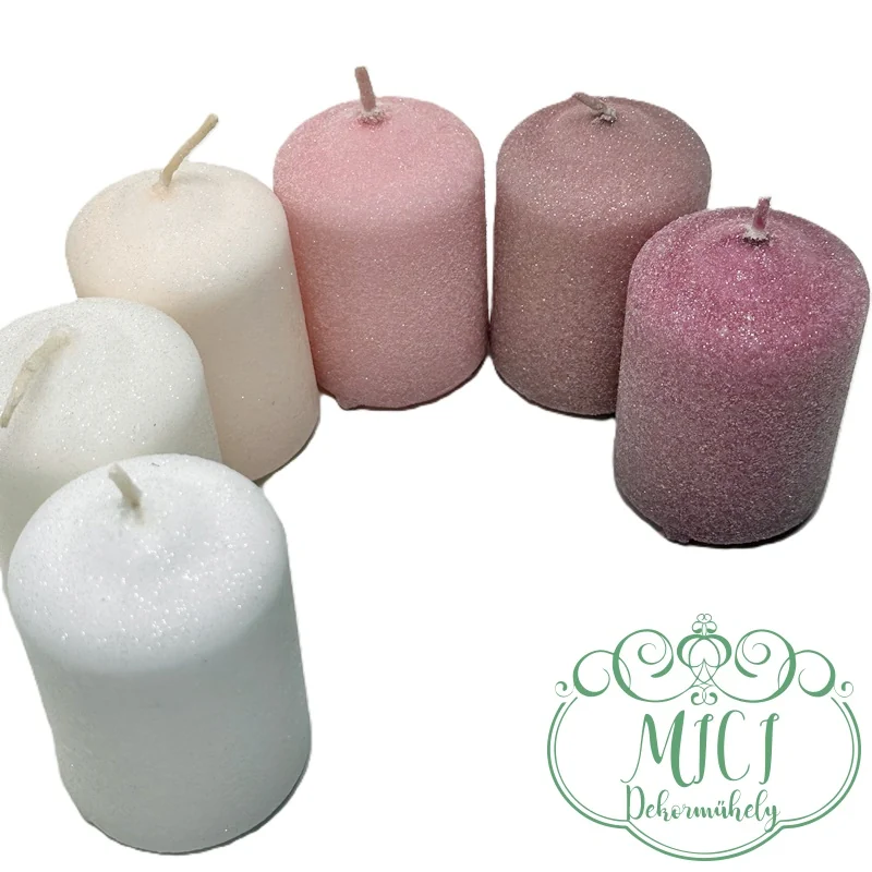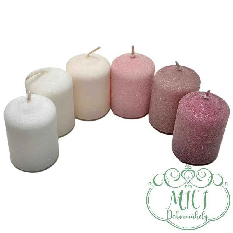 Gyertya; tömb-henger gyertya; Bársony-glitter; 50*75mm