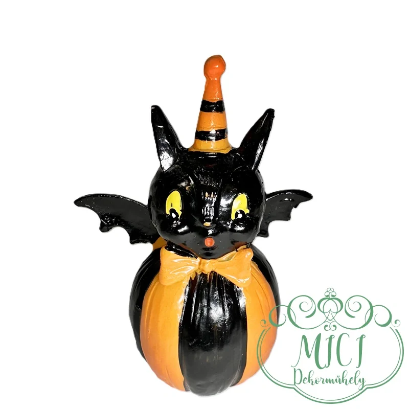 Halloween dekoráció; tökdenevér; tök forma- denevér figura; polyresin; 4,5*9,5cm szárnynál ~8cm