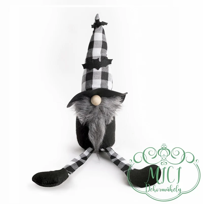 Halloween MANÓ; orrszakáll; textil; fekete-fehér; ülő-lógólábú; nehezékes; 33,5cm+lábak(20,5cm)