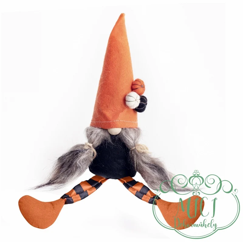 Halloween MANÓ; orrszakáll; textil; fiú/lány; narancs/fekete; álló; nehezékes; lógólábú; 24,5cm+lábak(16,5cm)