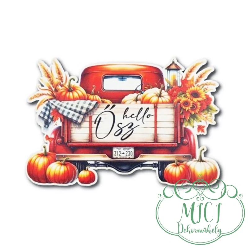 Hello ősz- piros autó 13,5x9cm