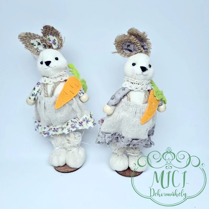 Húsvéti textil dekoráció; nyuszi lány; álló; régies ruha; répával a kezében 16*7,5cm