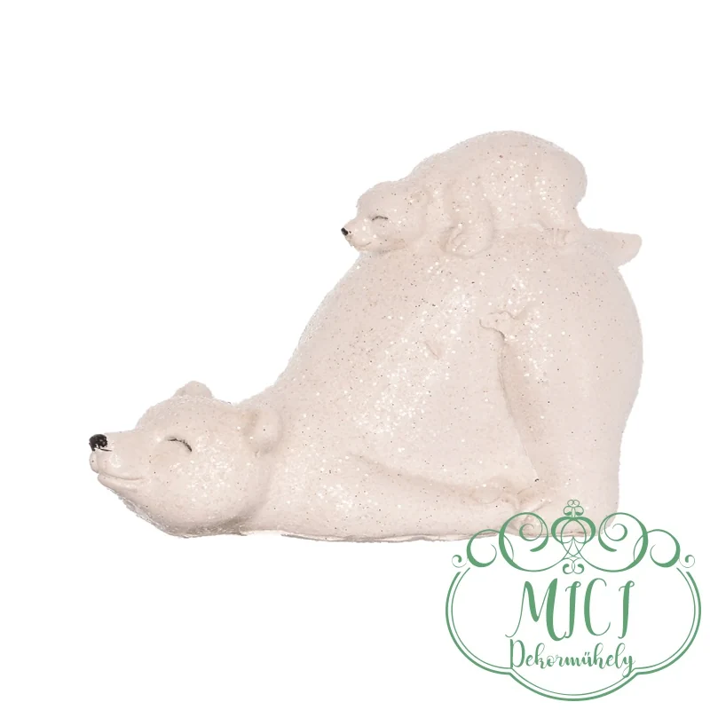 Jegesmedve kismedvével glitteres poly 4,5×7,5x6cm fehér, fekete 2 féle