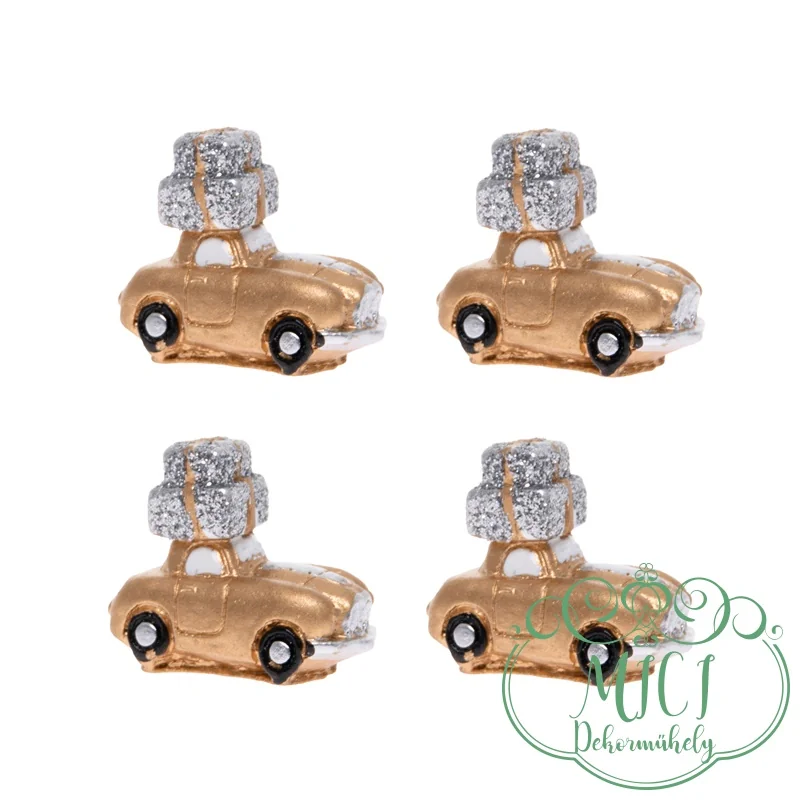 Karácsonyi dekor; Autó; ajándékkal; arany; 2,6×2,9×1,7cm