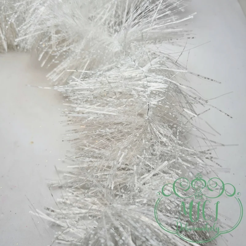 Karácsonyi dekor; boa; fehér csillogós girland; 1,8m-hosszú; 8cm szélességű
