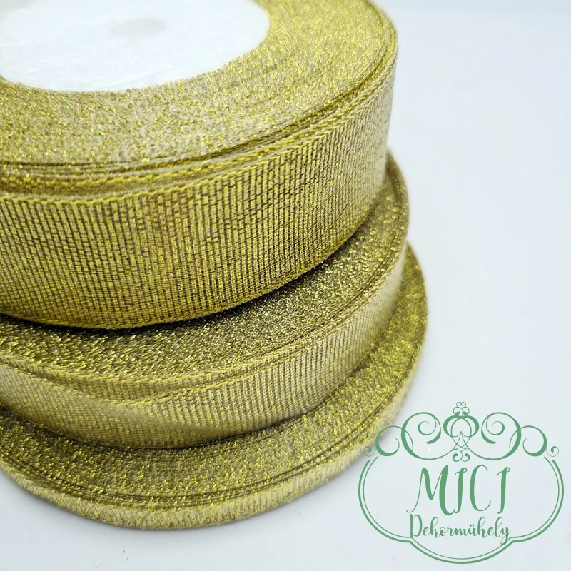 Karácsonyi textil szalag; arany színű; 6mm/15mm/25mm vastagságú