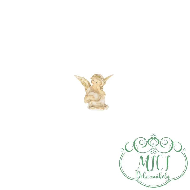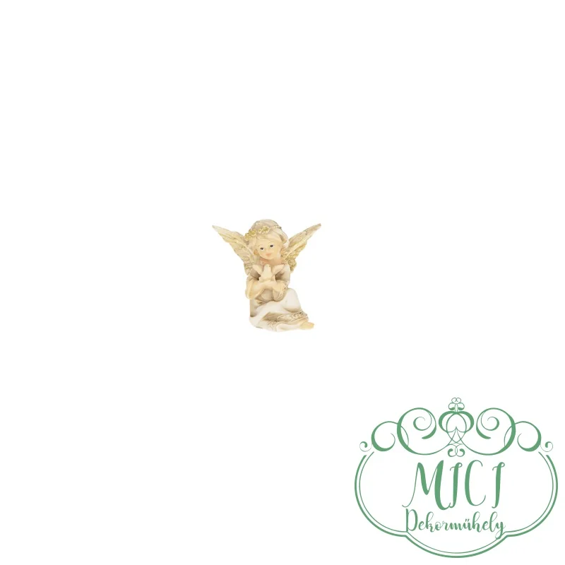 Kerámia angyal; ülő; régies; bézs-arany; polyresin; 8,2x6x7,5cm
