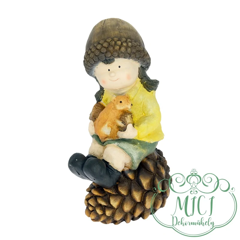 Kerámia gyerek; Kisfiú/Kislány; makkon/tobozon ülő; makk sapiban; 23*18*39cm