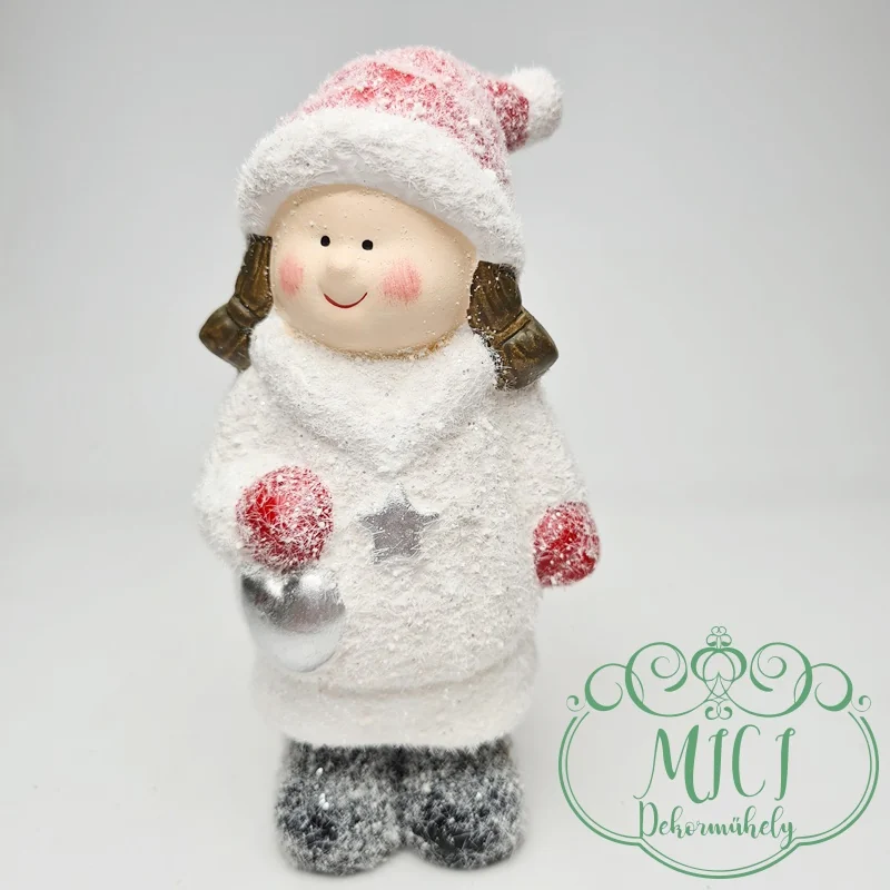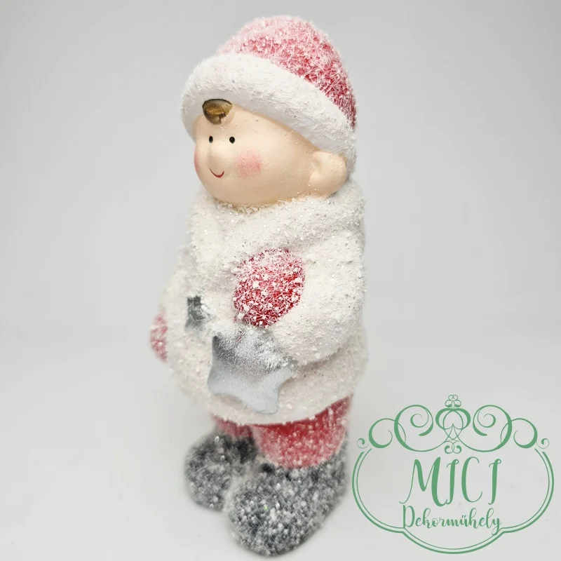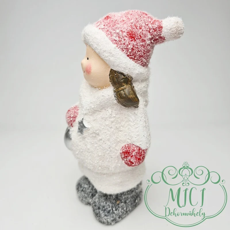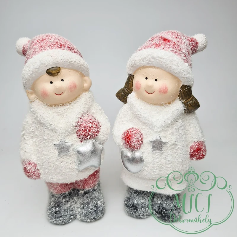 Kerámia kisgyerek; fiú/lány; piros-fehér havas; 15*5*6cm