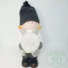 Kerámia kislány; kötött sapiban; LED-es hógolyóval a kezében szürke/fehér; 24*7*10cm