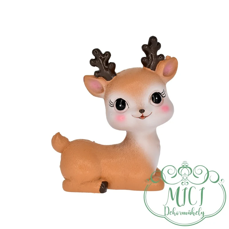 Kerámia szarvas; cuki gyerek szarvas; bambie; fekvő; polyresin; 8×4,2x9cm