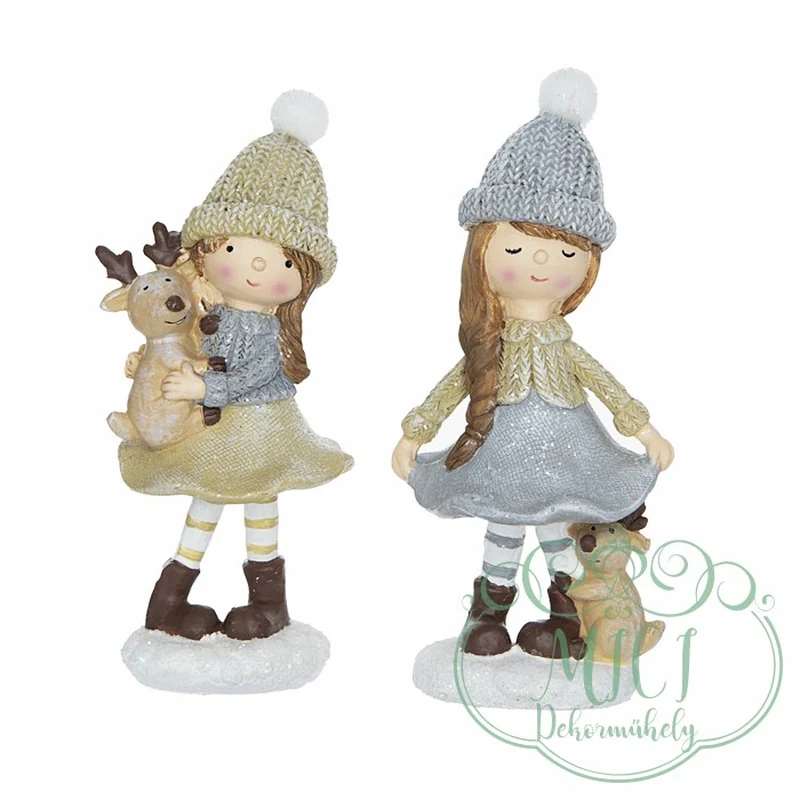 Kislány szarvassal; álló; glitteres szürke/barna; poly 5x4x11cm
