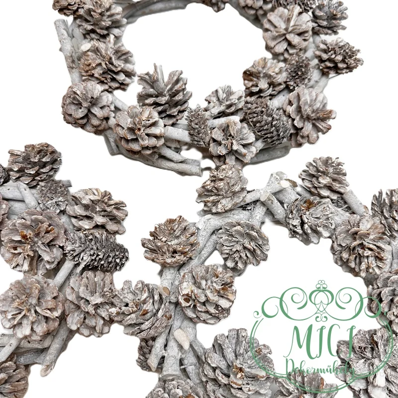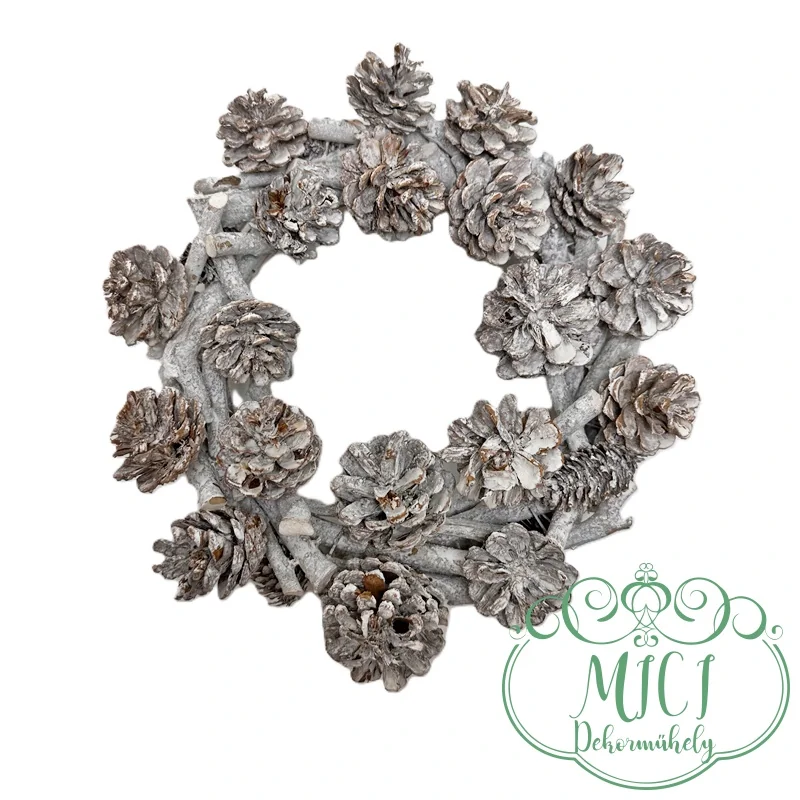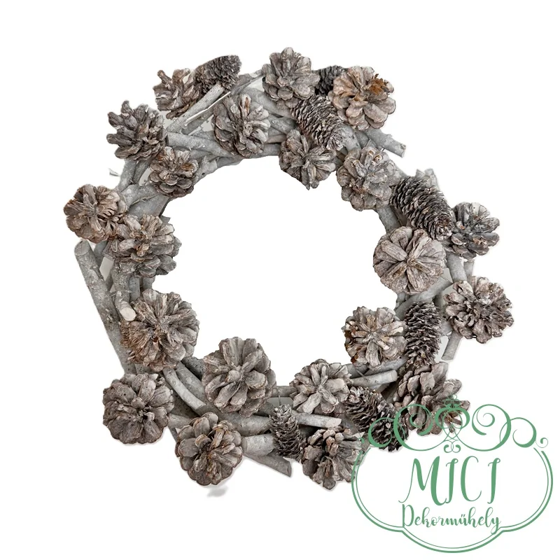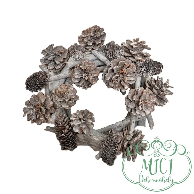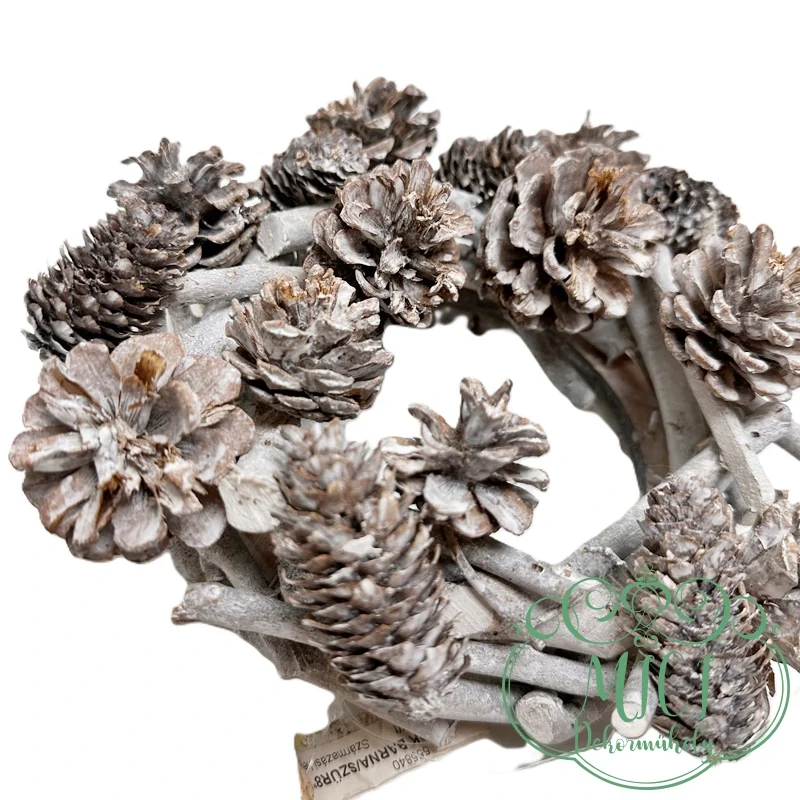 Koszorúalap; ágacska alap-tobozokkal; szürke-barnás; természetes jelleg; több mérteben