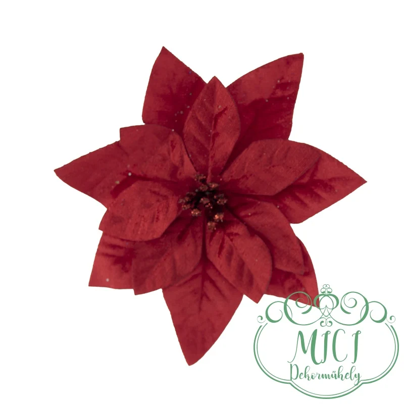 Mikulásvirág; csipeszes; textil; piros; 16cm
