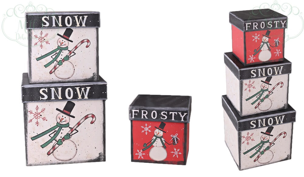 Papírdoboz karácsonyi hangulatra hangolva, hóember mintával. Négyzet formájú, kocka papírdoboz „S”-méretben szélessége:12,5cm; hosszúsága: 12,5cm; magassága: cm; Kiegészítõje lehet: karácsonyi box, adventi dekoráció, egyéb home decor, ajándék csomagolás, tárolás. Születésnap, Névnap vagy egyéb alkalomra ajándék csomagolására is alkalmas.