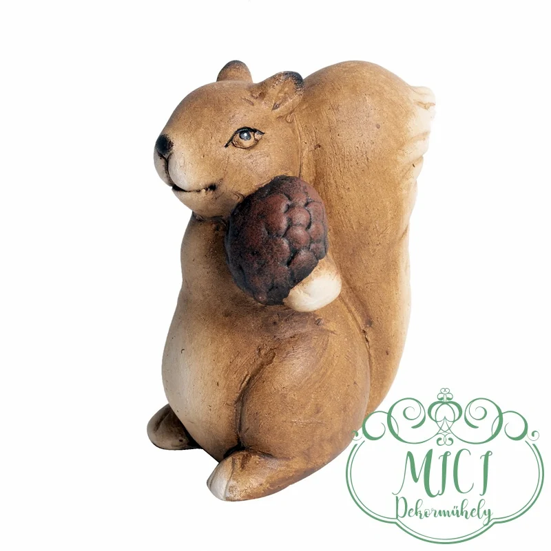 Őszi figura; Mókus tobozzal a kezében; álló; barna; kerámia; 7*5,5*9cm